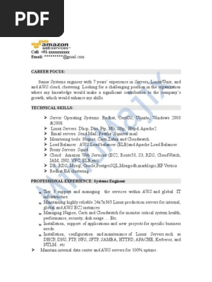Aws resume for years experience pdf. Previous experience with amazon web services and architecting sap solutions on aws a plus 31. Cognitive about designing deploying and operating highly available scalable and fault tolerant systems using amazon web services aws. Only write a summary for your aws resume if you have a professional experience of 3 years and above. Experience in migrating and implementation of multiple applications from on premise to cloud using aws services like sms.